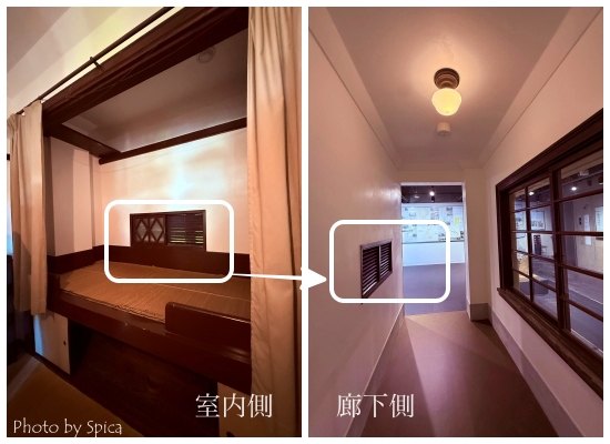 ベッドが括り付けとなり、換気のために廊下側とベッドの間に