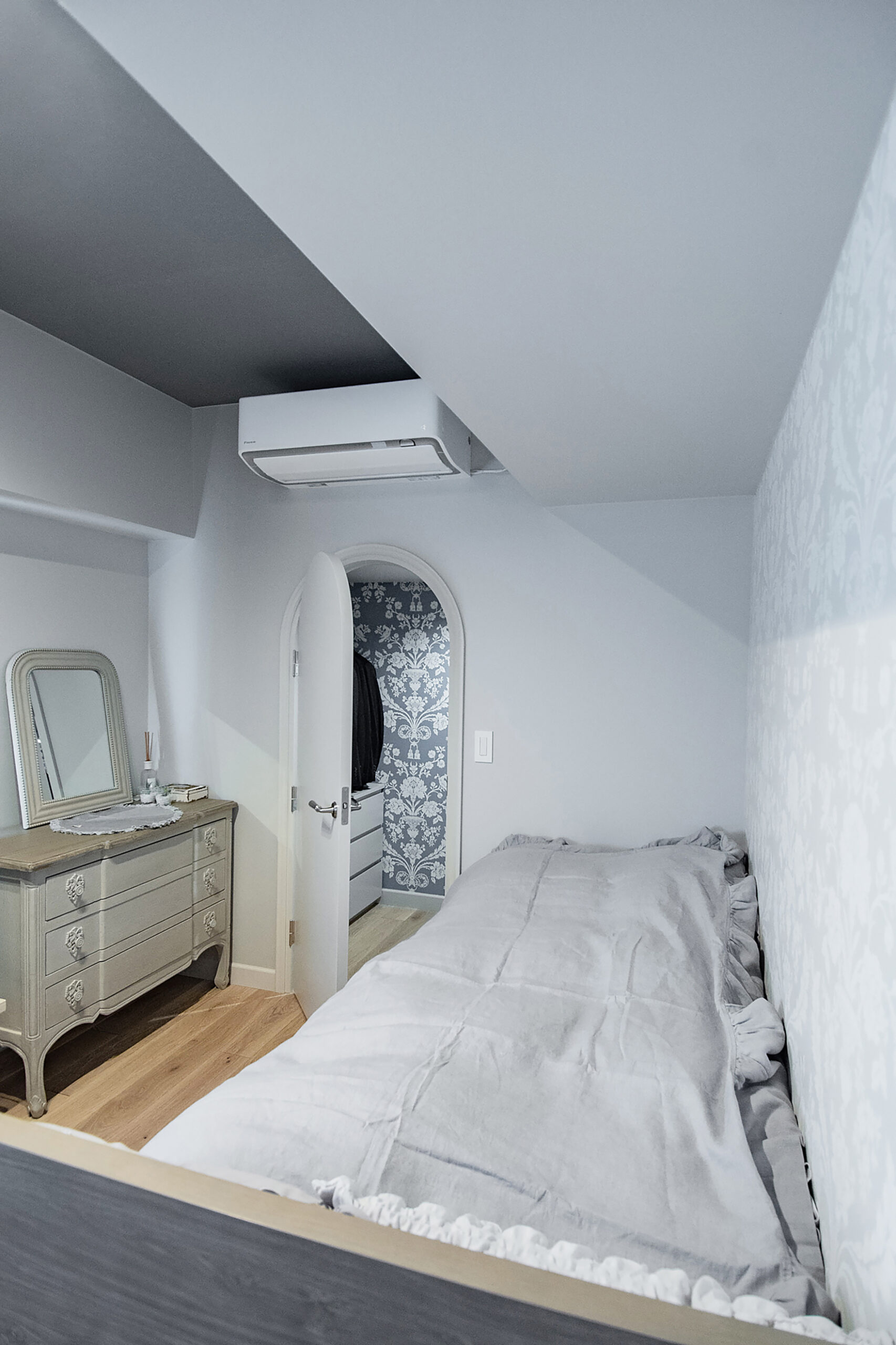 別々の寝室はフレンチシャビーにこだわらず、お互いの好みのインテリアでまとめています。